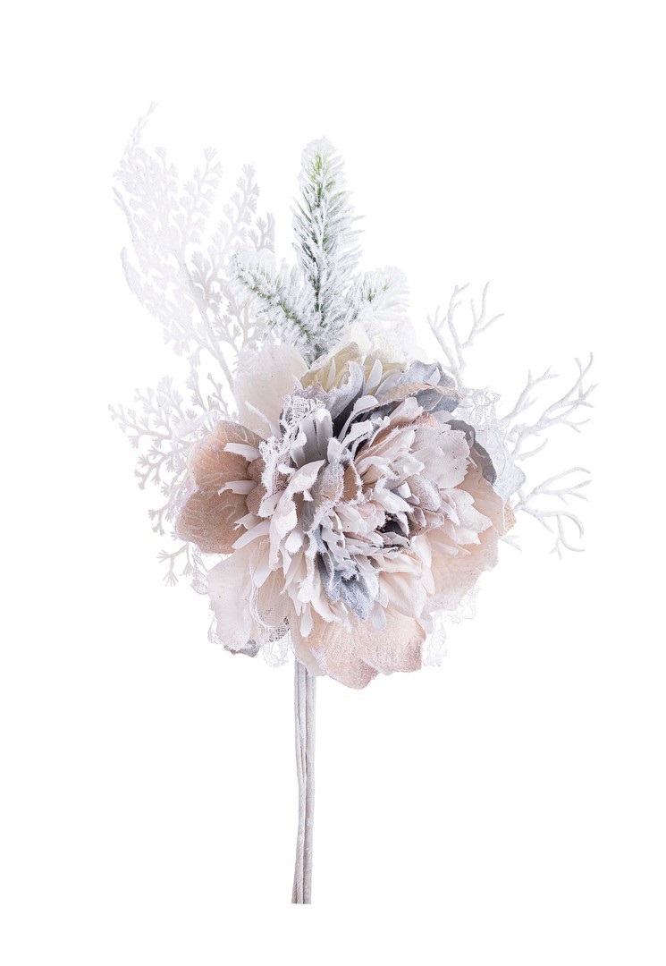 Natale pick peonia ginny cipria innevato cm.22x11 h.52