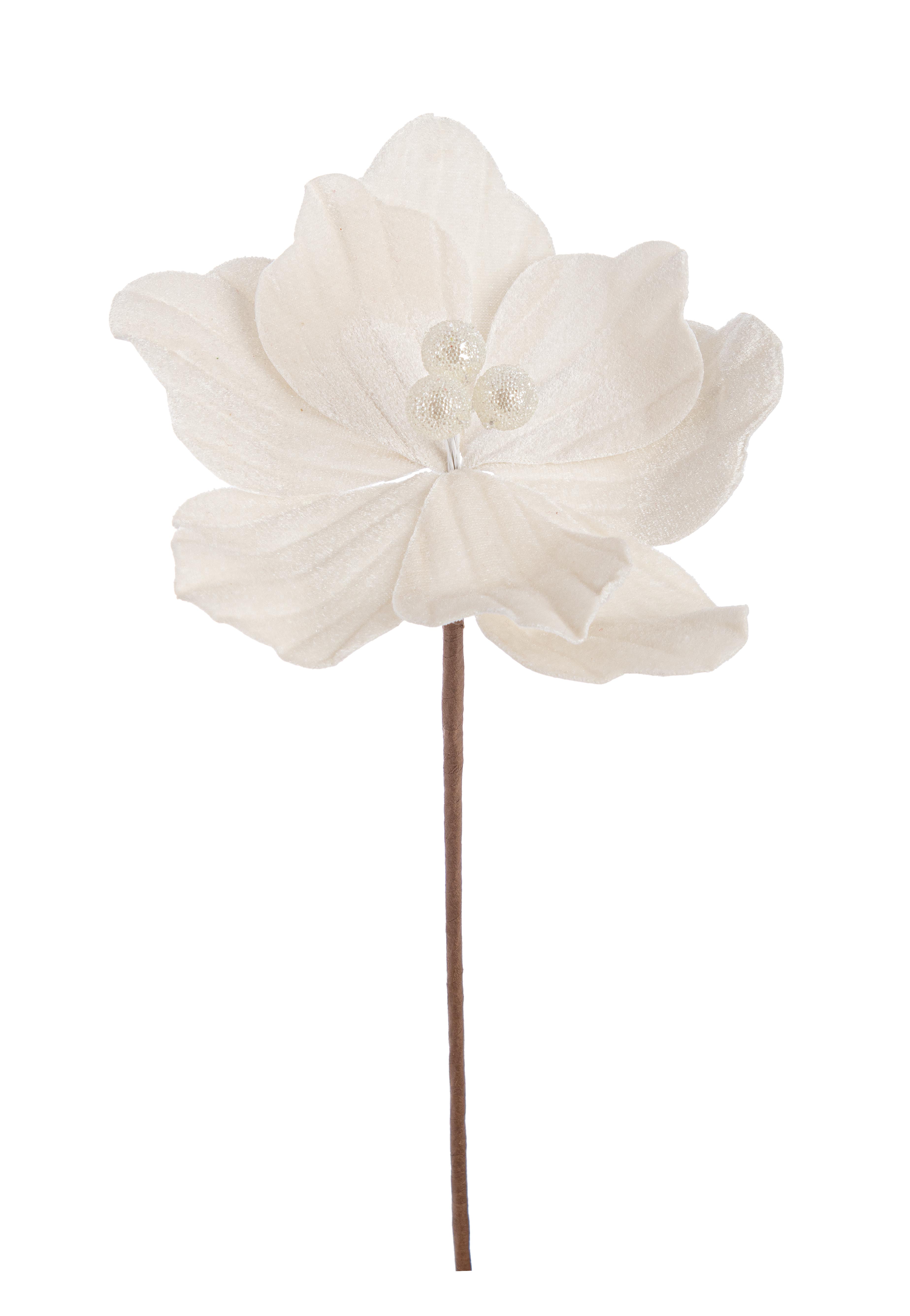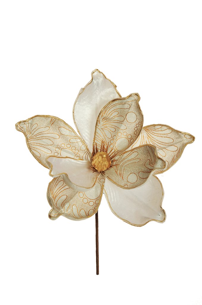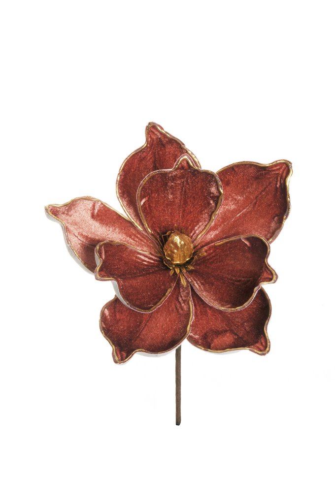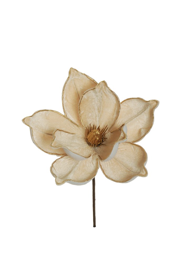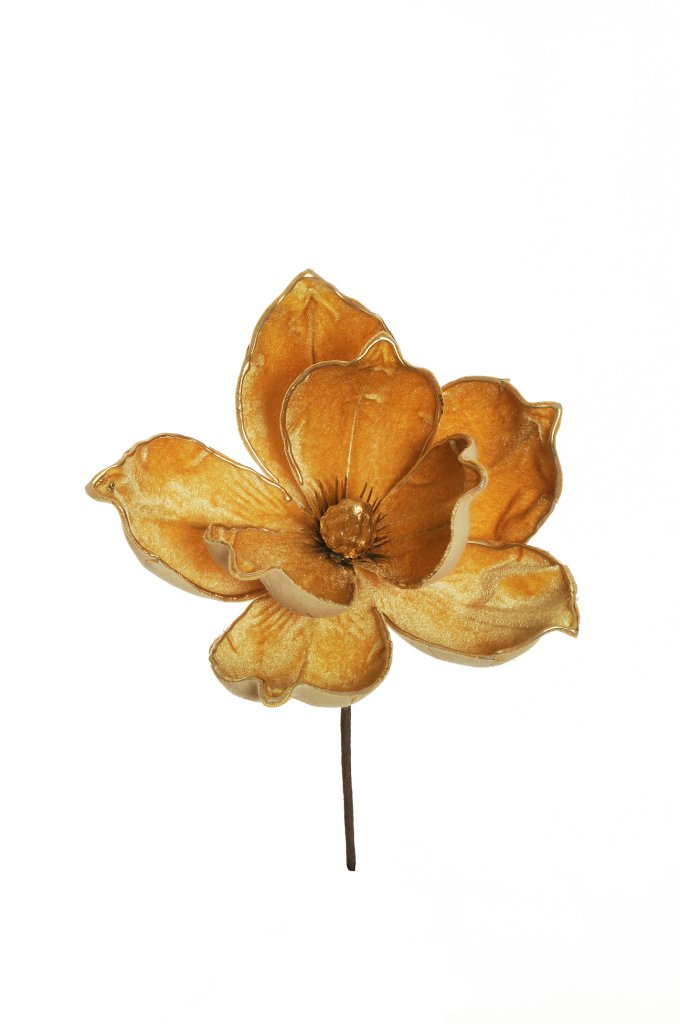 Natale pick fiore magnolia in velluto c/bordi oro d.21 h.30