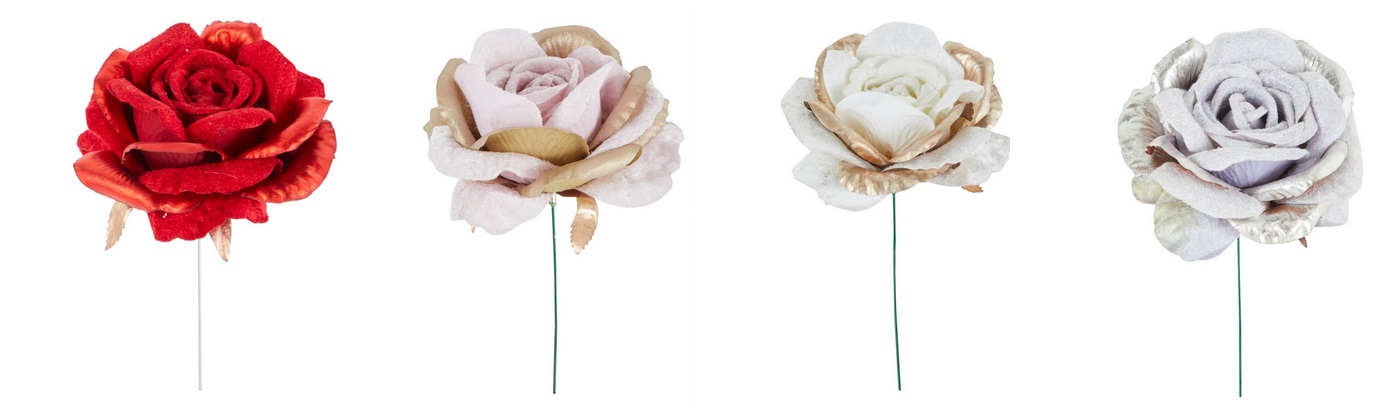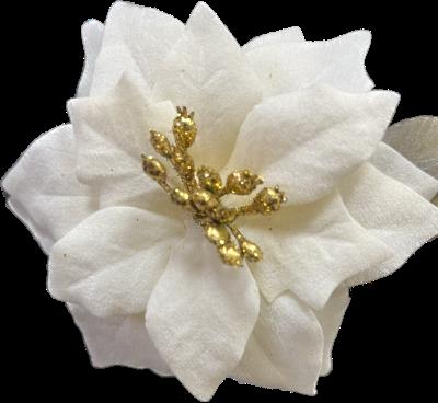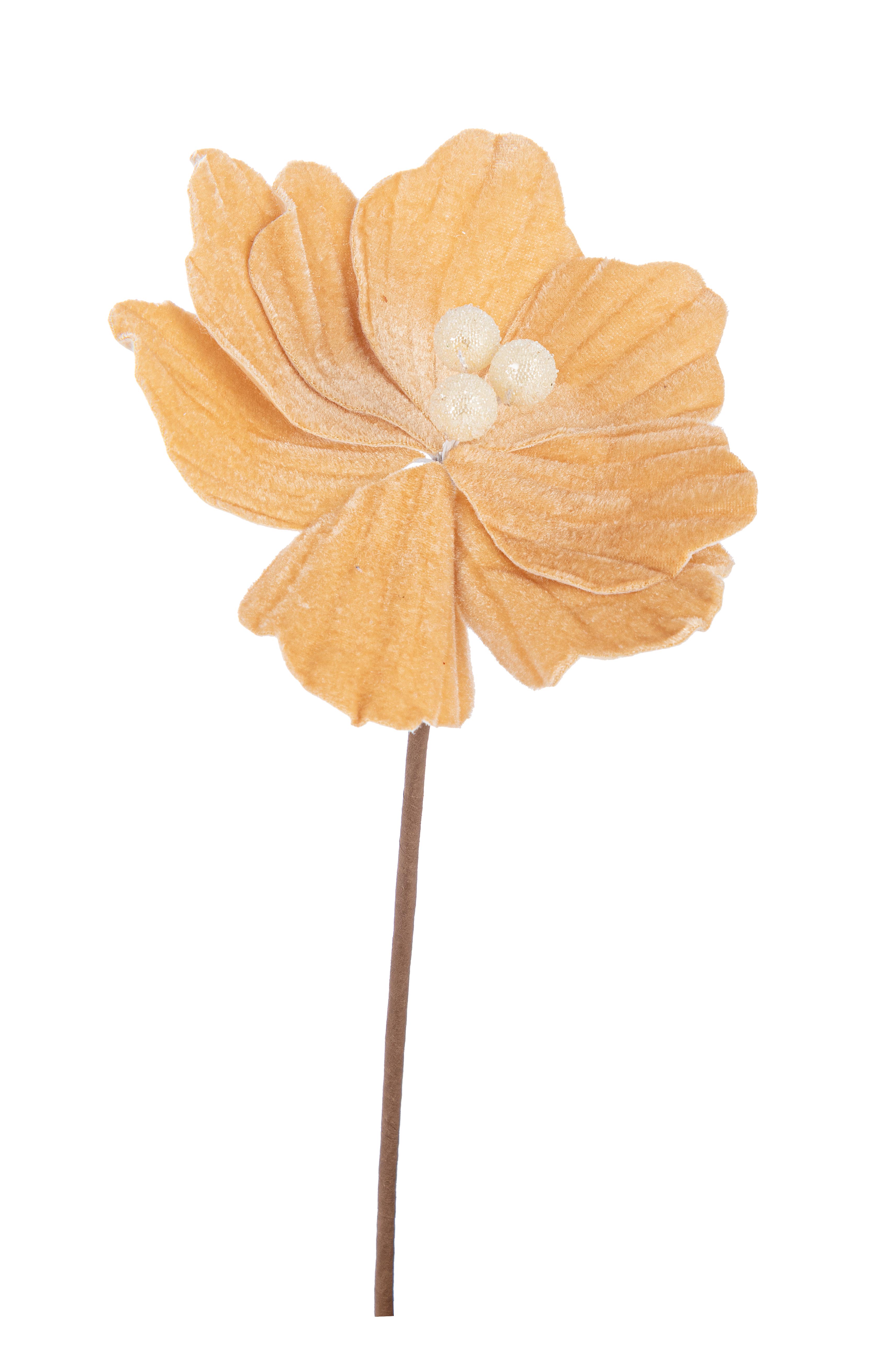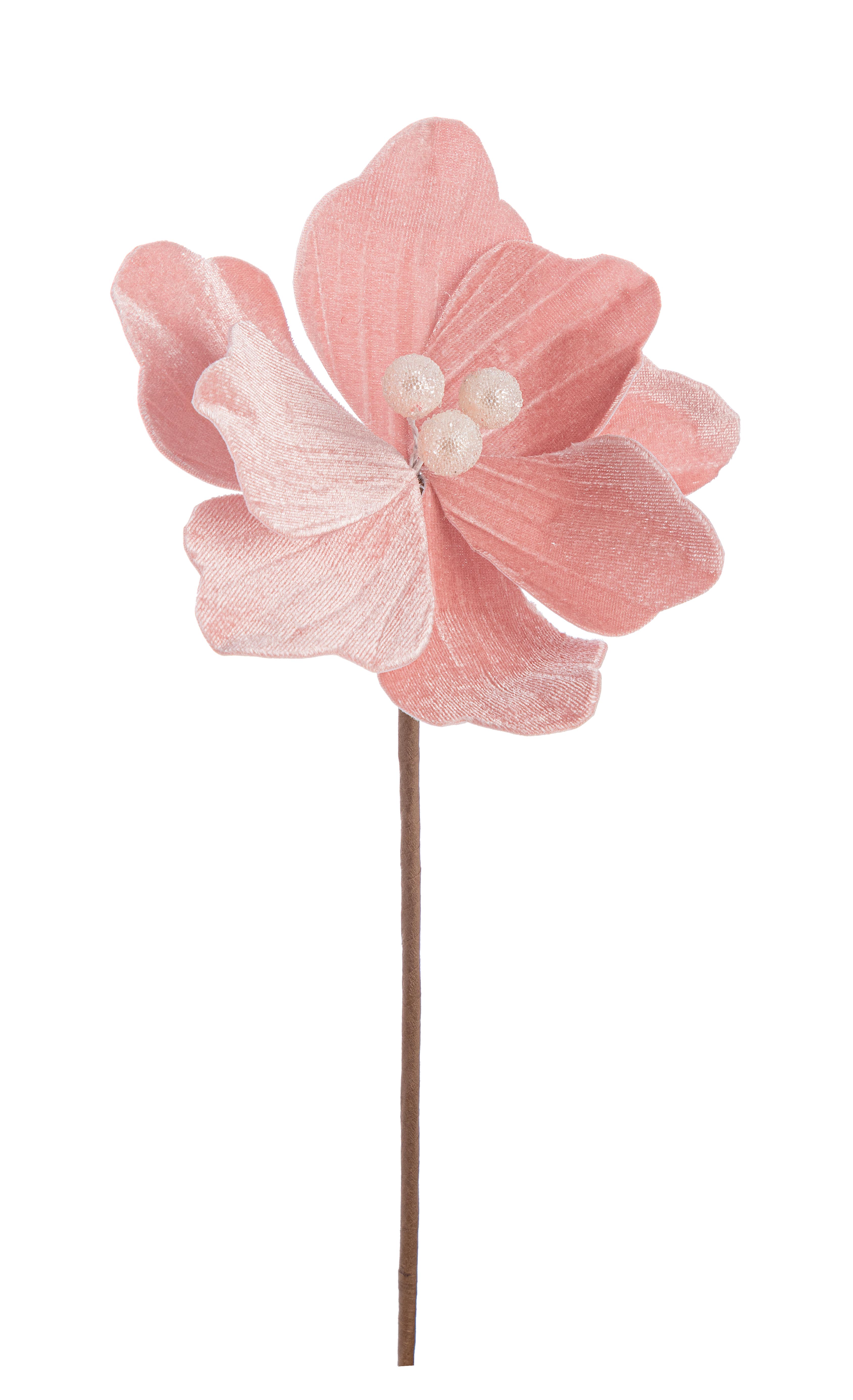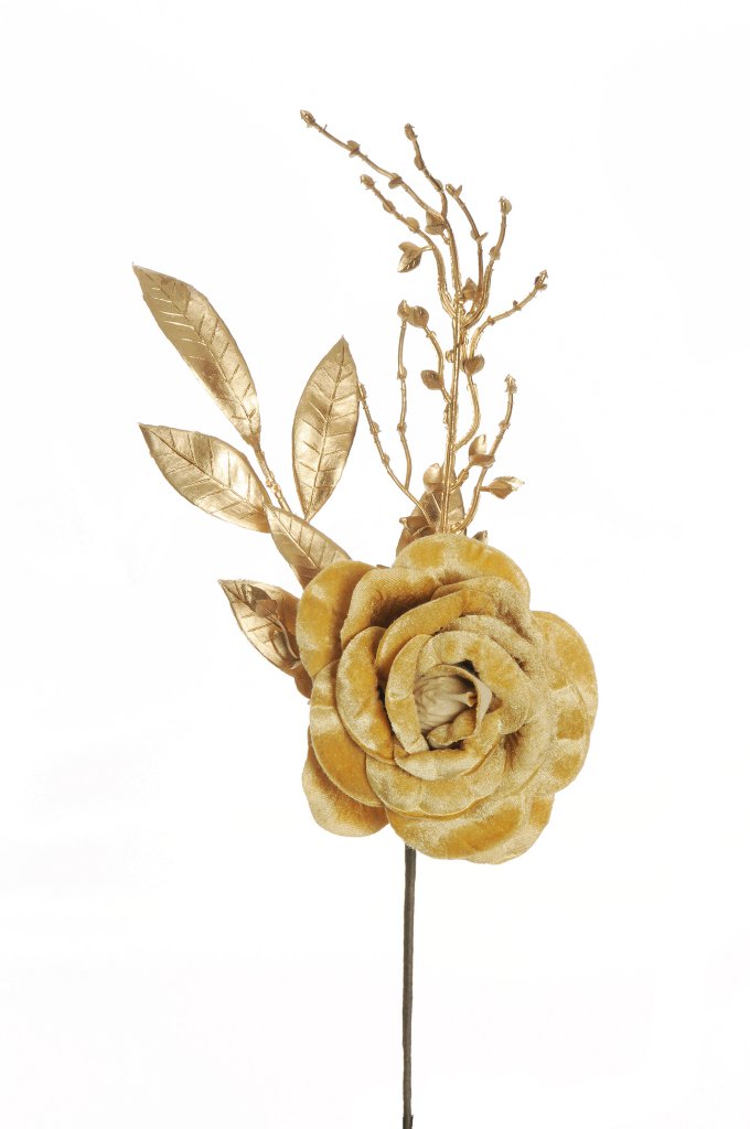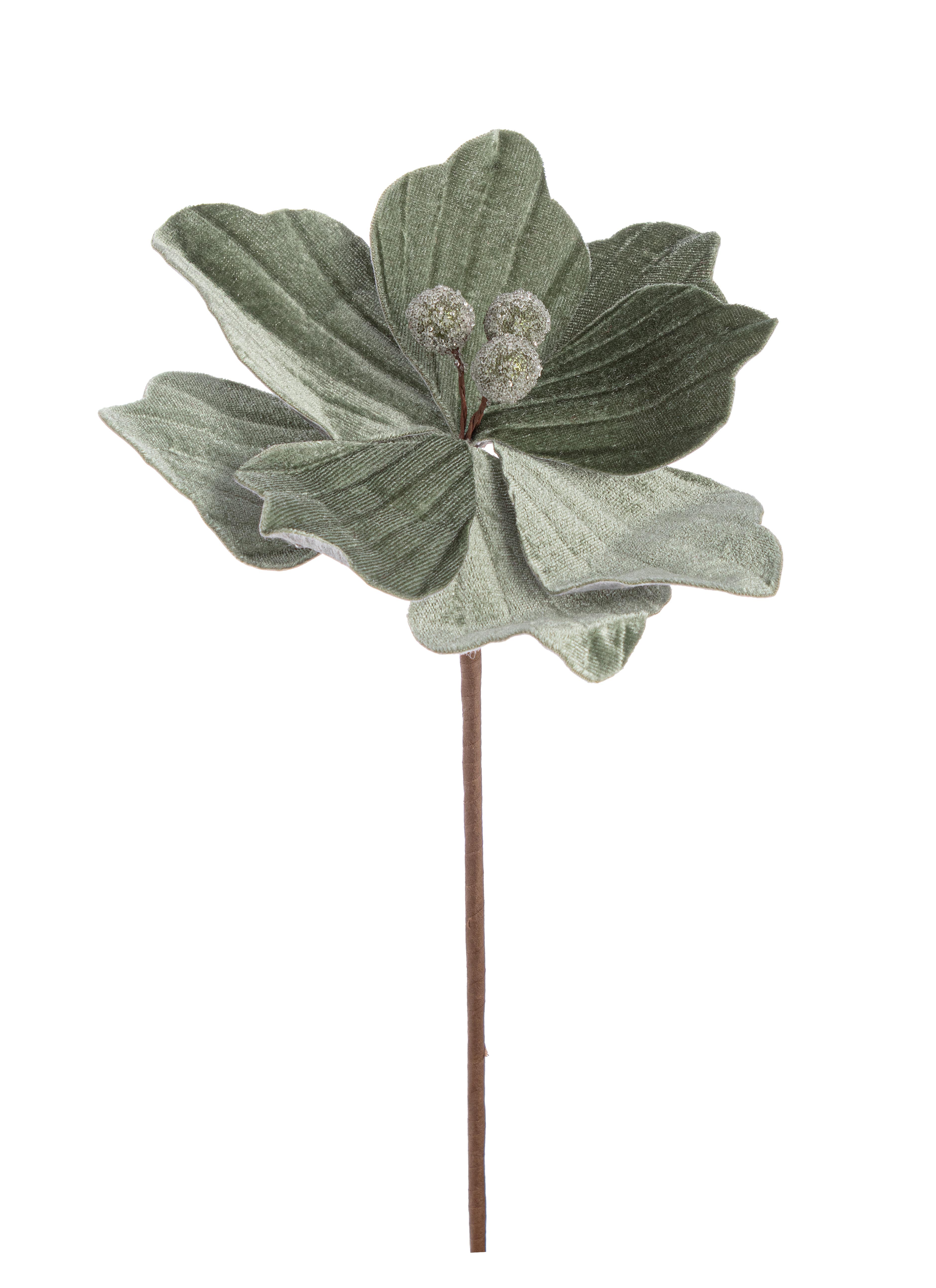 Natale pick fiore magnolia in velluto c/bordi oro d.21 h.30