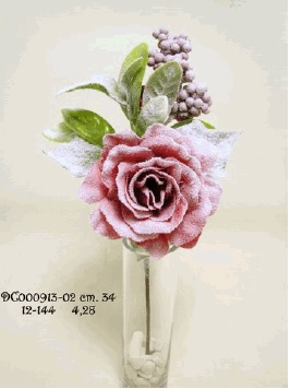 Natale fiore rosa in velluto c/foglie metallizzate d.12 h.43