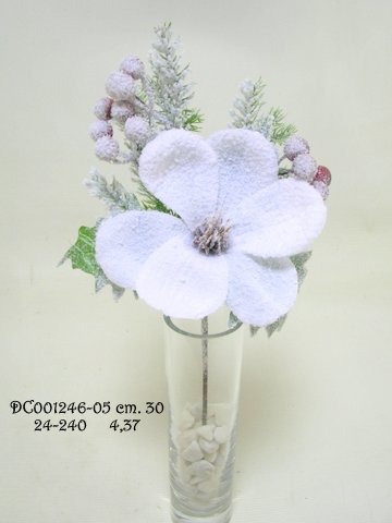 Natale rametto stella natale plastificata con glitter colorebianco cm.d5