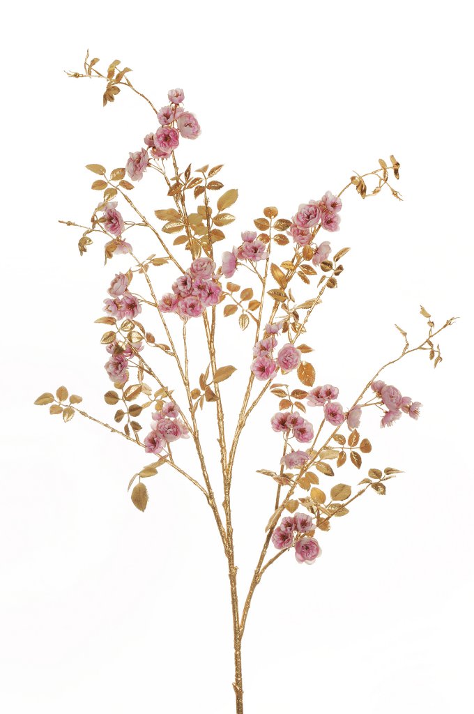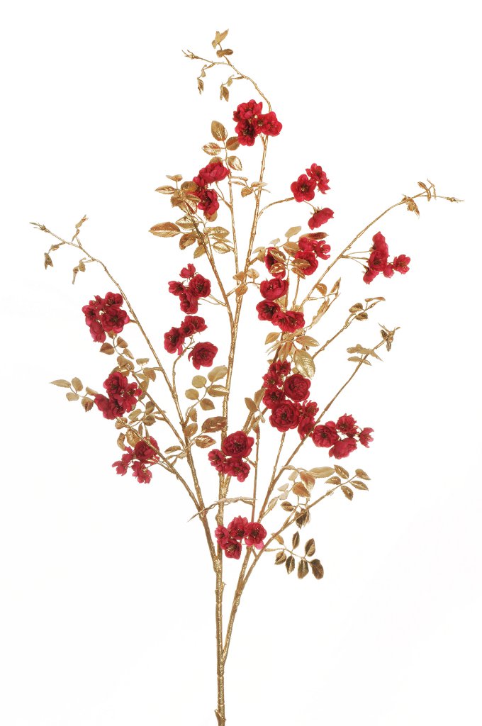 Ramo rosellina c/stelo e foglie metallizzate cm.130