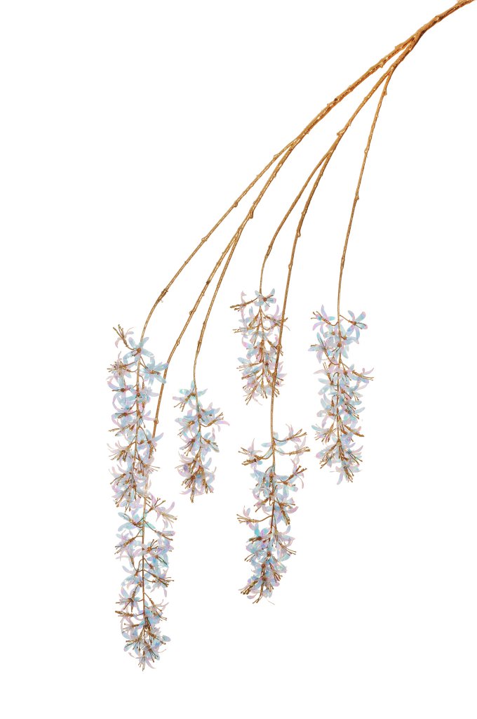 Ramo pendente glicine iridescente x6 c/stelo metallizzato cm.133