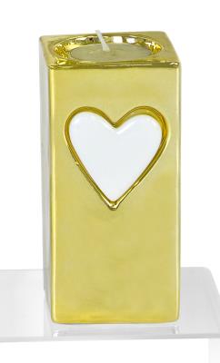 Portacandela porcellana oro c/cuore cm.6,5x7 h.13,5
