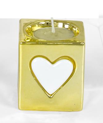 Portacandela porcellana oro c/cuore cm.6x6 h.7