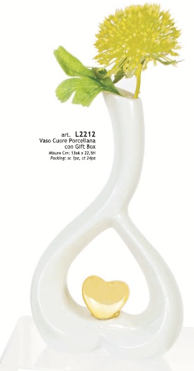 Vaso porcellana cuore cm.13x6 h.22,5 c/gift box