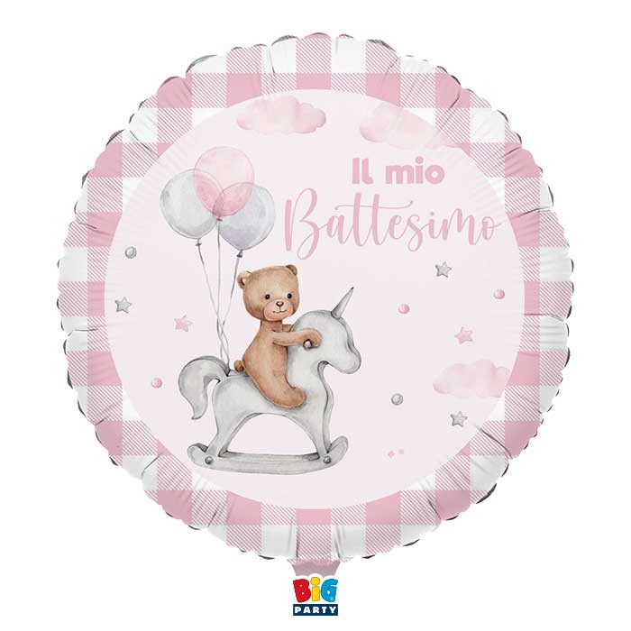 Party palloncino Mylar 18'' cm.45 Battesimo rosa