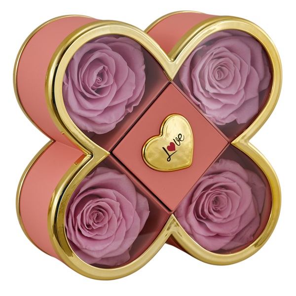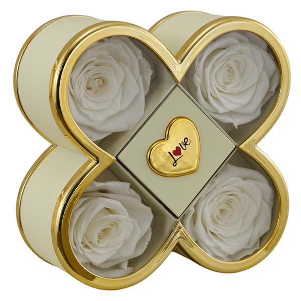 Scatola quadrifoglio c/4 rose stabilizzate cm.14x14x6