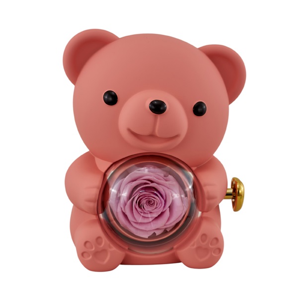 Scatola orsetto c/rosa stabilizzata cm.12x13x16