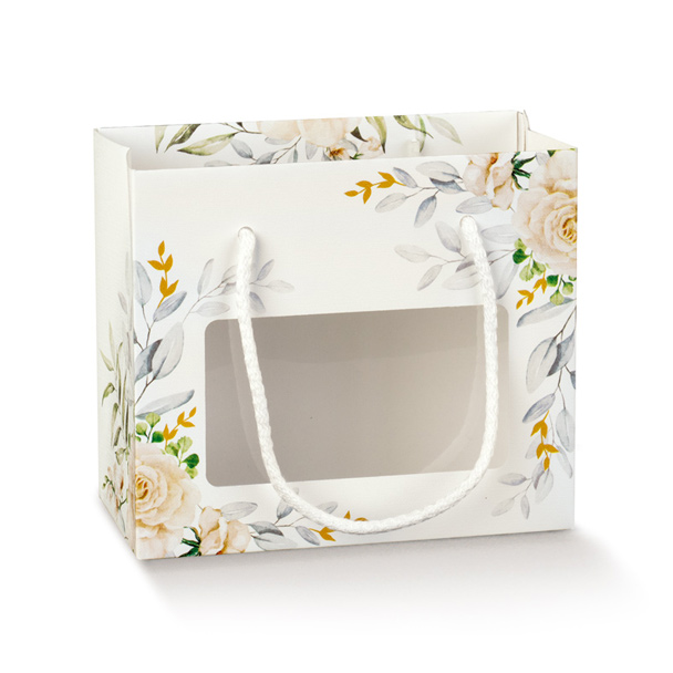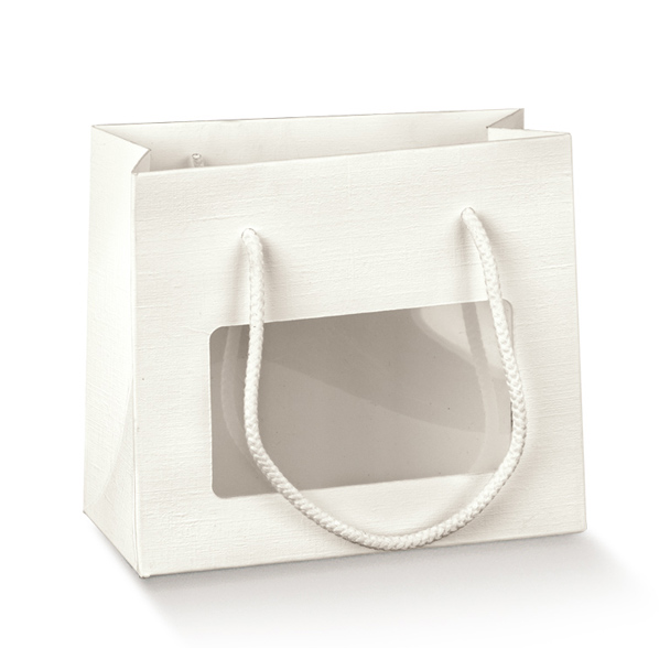 Scatola shop box c/finestra in plastica c/cordini cm.16x8x14