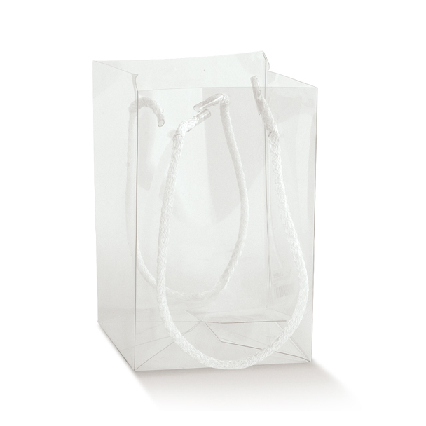 Scatola shop box c/finestra in plastica c/cordini cm.19,5x9,5x17