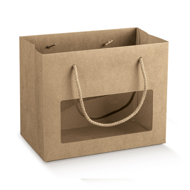Scatola shop box c/finestra in plastica c/cordini cm.24x14x19,5