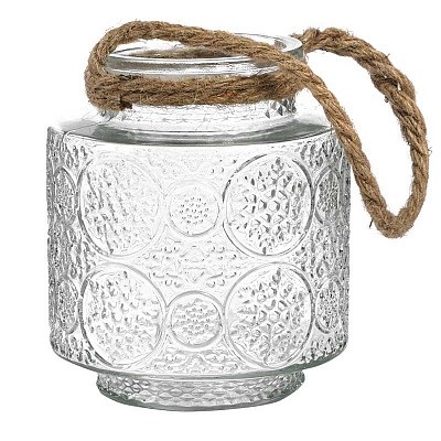 Vetro lanterna ricamata c/manico naturale cm.12x14,5