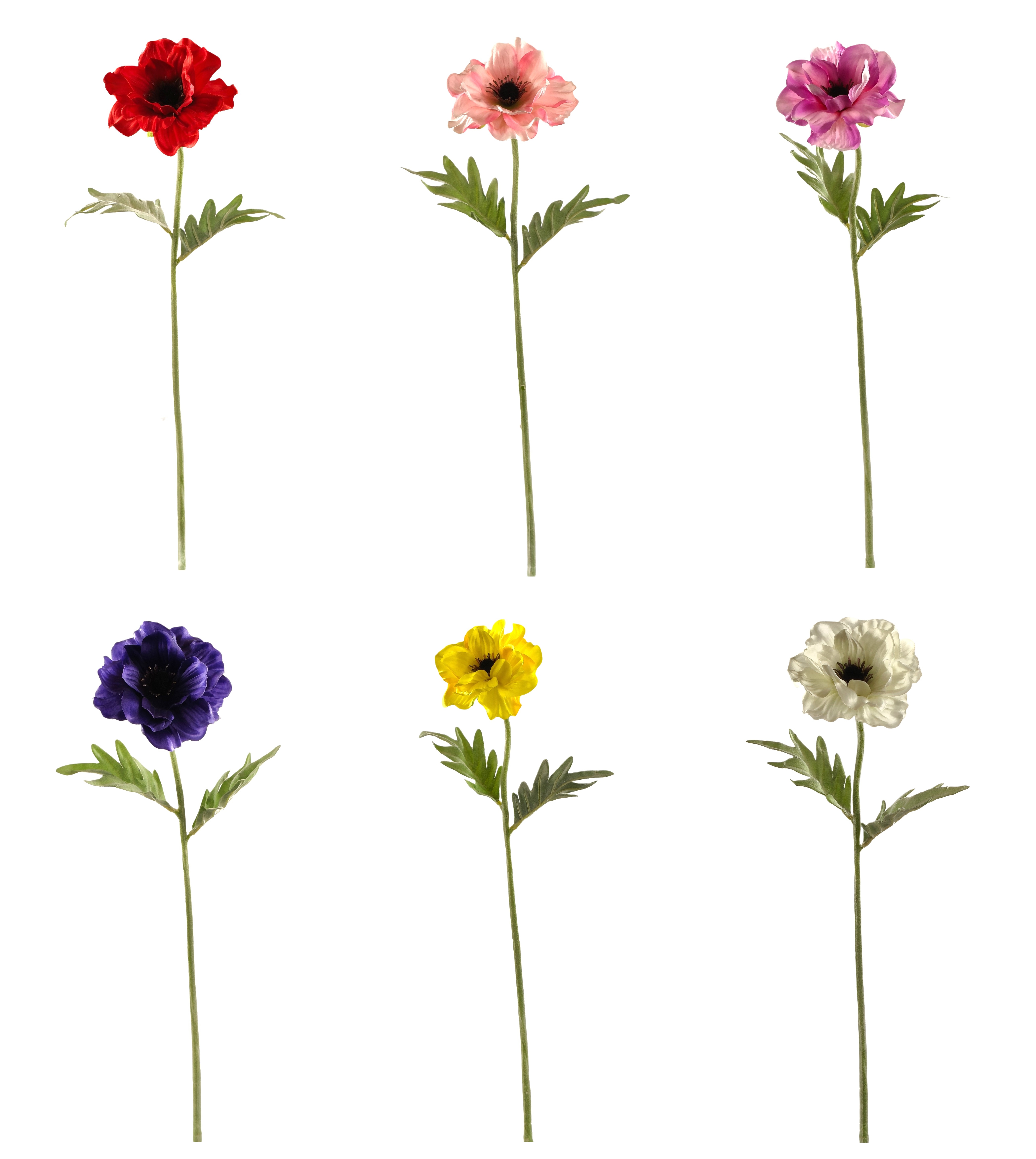 Fiore stelo anemone ass.6 colori cm.44